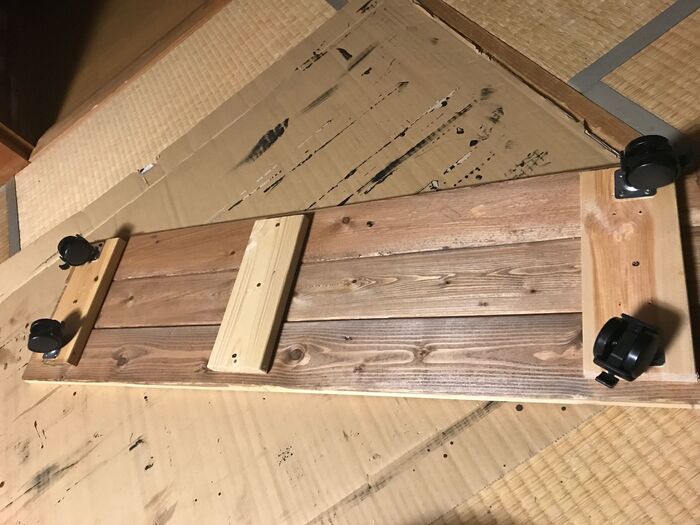 補強板にキャスターを取り付けて
