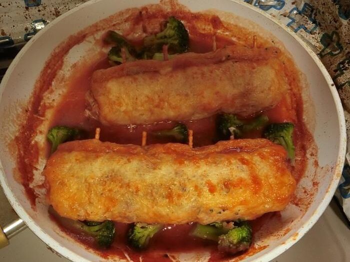 転がしながら煮て、煮汁が半分くらいになったらブロッコリーを入れます。