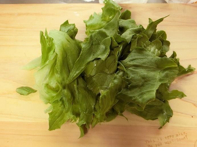 うどん、レタス、肉を皿に盛りつけ、★印のタレとマヨネーズをトッピングしたら完成♪
