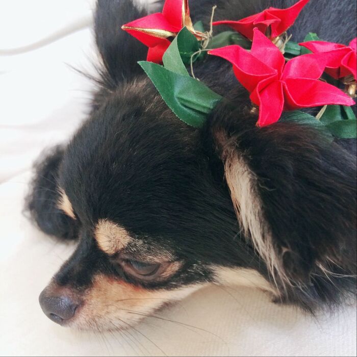 ワンコの頭にのせて写真を撮るのはかなり大変でした〜(*_*)