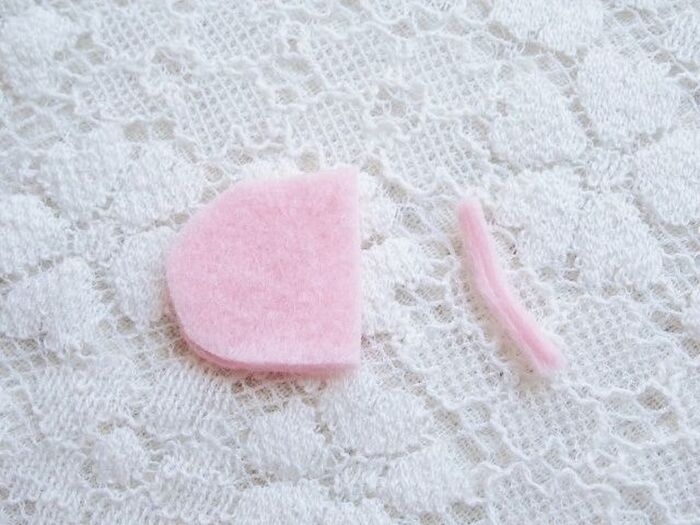 白いぼん天を指でぎゅっとつまみ、横に細長い丸の形に整えます。
