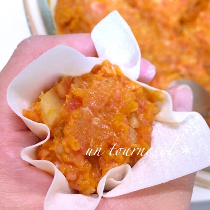 *冷凍する際は、④まで作って冷凍し、冷凍のまま蒸し焼きにしてください。その際、蒸し時間を長めに!