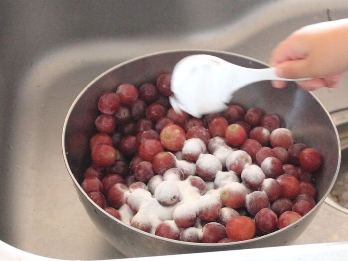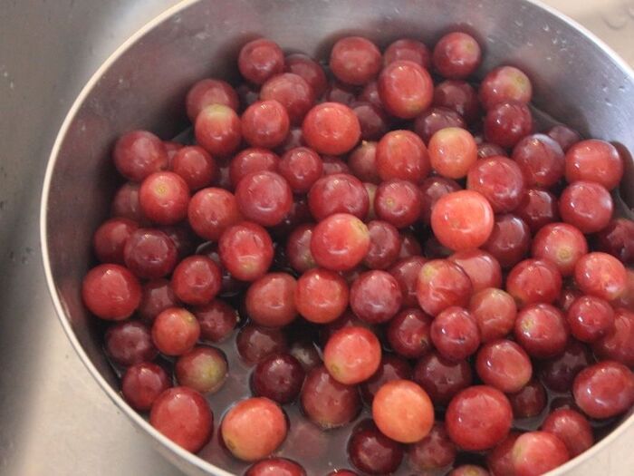 ①買ってきたシードレスグレープの実を取り外してボウルへ入れます。