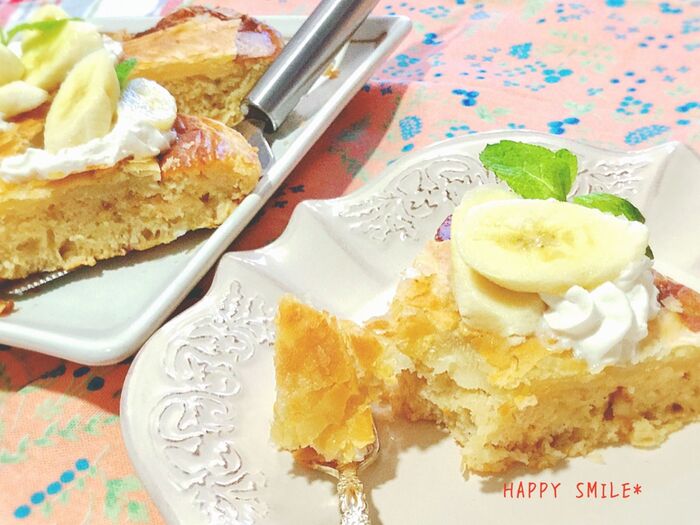 潰しバナナとカッテージチーズがふんわり感を与え、