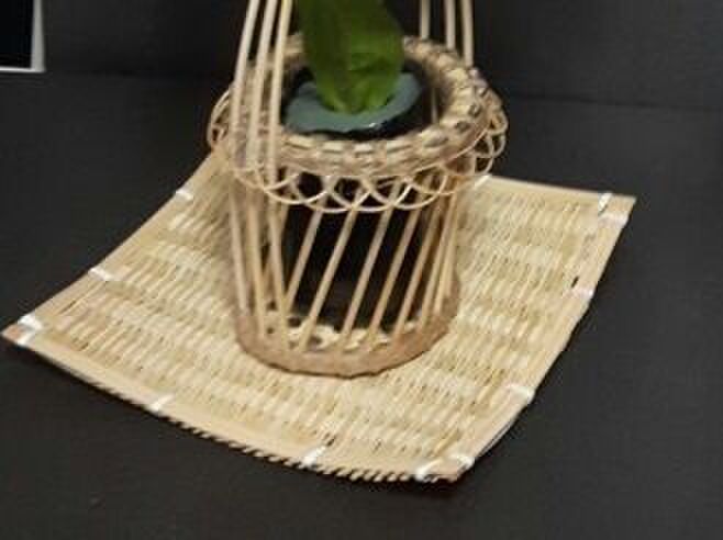 ④ 白い竹の皿の上に竹の一輪刺し花瓶を載せる。