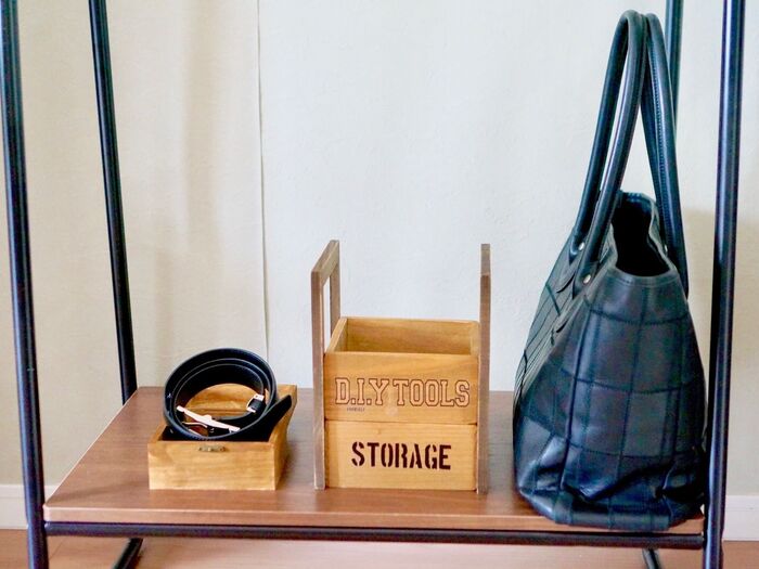 会社用の鞄やハンカチ・鍵など、毎日真ん中のケースにザックリ入れるのが主人の日課。
