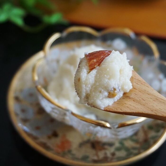 実は…白あんクリームを試作して緩くなり過ぎて失敗したクリームを更に緩くしてナッツを加えてみたら美味しくてびっくり!というエピソードが(笑)家族には「なにこれ?美味しい!」と喜んでもらえた白あんとナッツのディップ。和洋どちらの顔を持つのでケーキやパンはもちろんですがお団子に付けても美味しいはず!色々夢が広がるディップの発見です♪