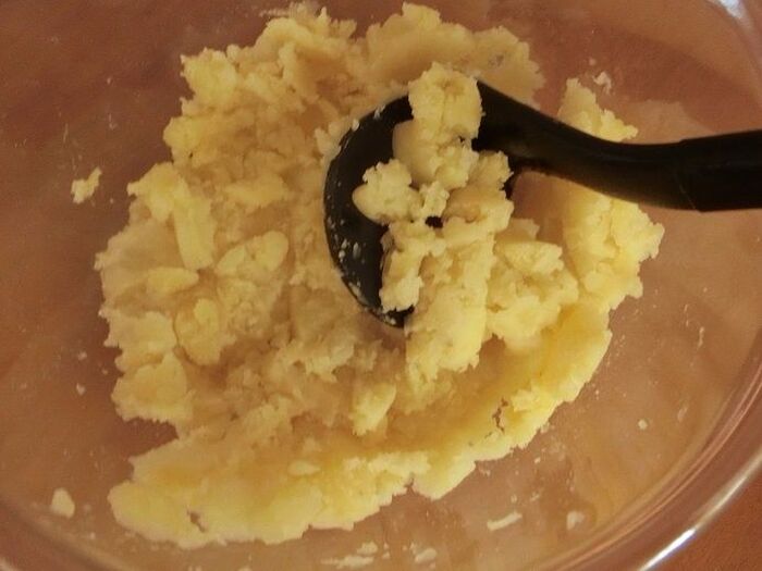 じゃが芋は1㎝の輪切りにします。耐熱容器に入れふんわりラップをかけて電子レンジ600wで5分加熱し、熱いうちにつぶします