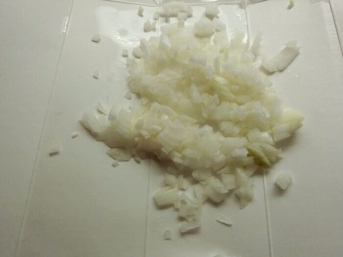 フライパンに油を入れて挽肉を炒めます。色が変わってきたらみじん切り玉葱も入れ、透き通るまで炒め、塩こしょうで味付けします