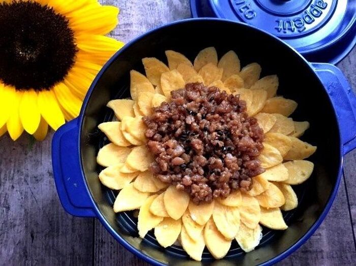 卵焼きを花びらに近い型でくり抜く
