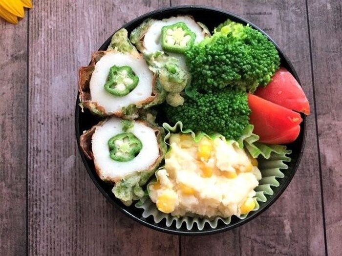 オクラ入りちくわの青のり風味揚げ