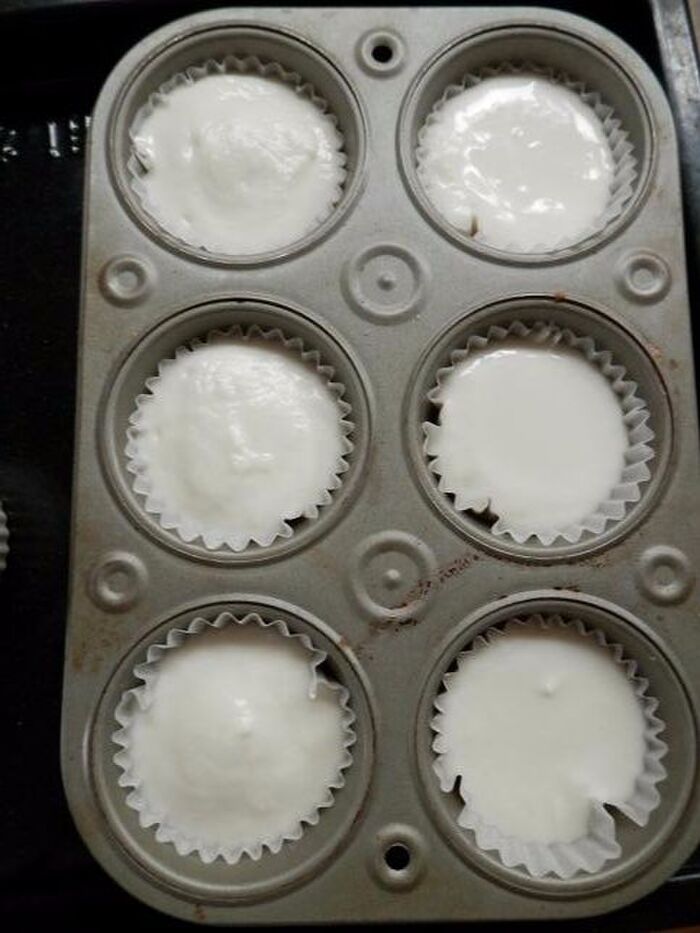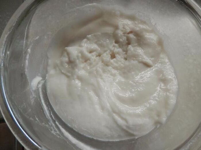 豆乳クリームを入れて、上から残りの生地を流し込みます。