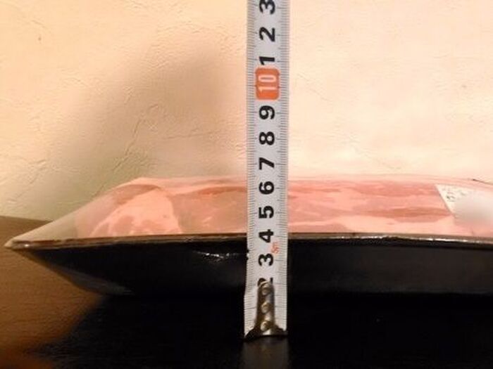 あまりに大きなお肉だったので、サイズを測ってみました!事前に冷蔵庫を開けておかないと、持って帰ってきてからでは大変なことになってしまいますからね。