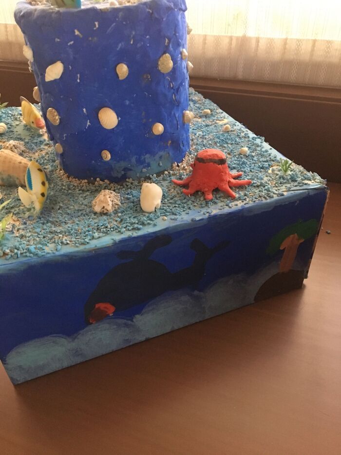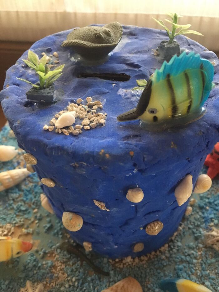 もしかすると、紙粘土が乾かないうちに着色して貝殻をつけたかもしれません。