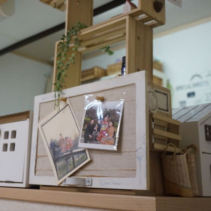 セリア木箱が、サイズピッタリ(^ν^)まるでセットだったかのよう♫