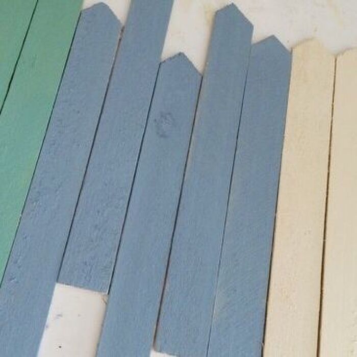 *板に、セリアの水性塗料「ナチュラルベージュ」に「スモーキーブルー」を混ぜた色を塗りました。