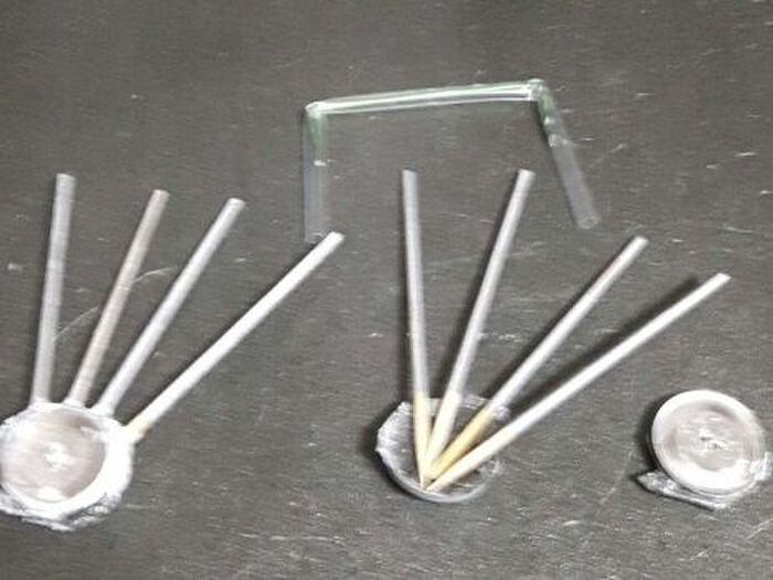 ⑩ 両側の竹串に収縮チューブの空洞部分を差し込む。