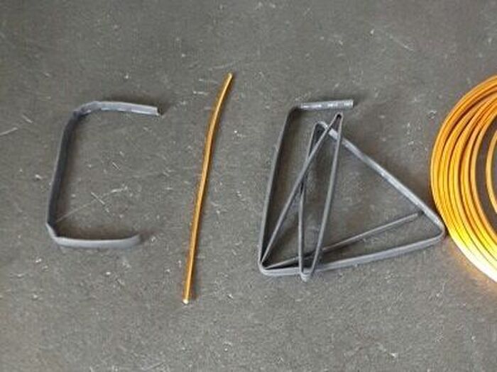 ⑥ アルミワイヤー(太さ2mm)を10cmに8本カットする。