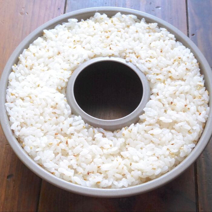 3、ご飯にすし酢とごまを混ぜ合わせ、粗熱をとります。