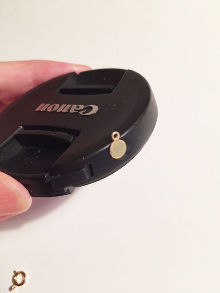 また、金具の取り付け位置もレンズキャップの正面に合うようチェックしてから接着してください。