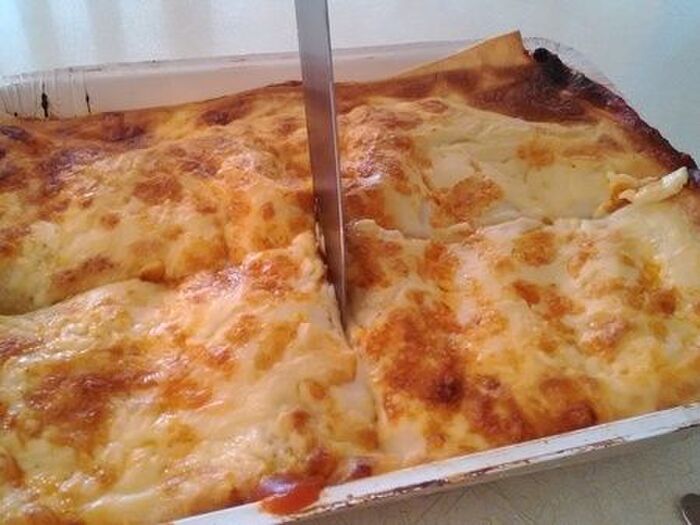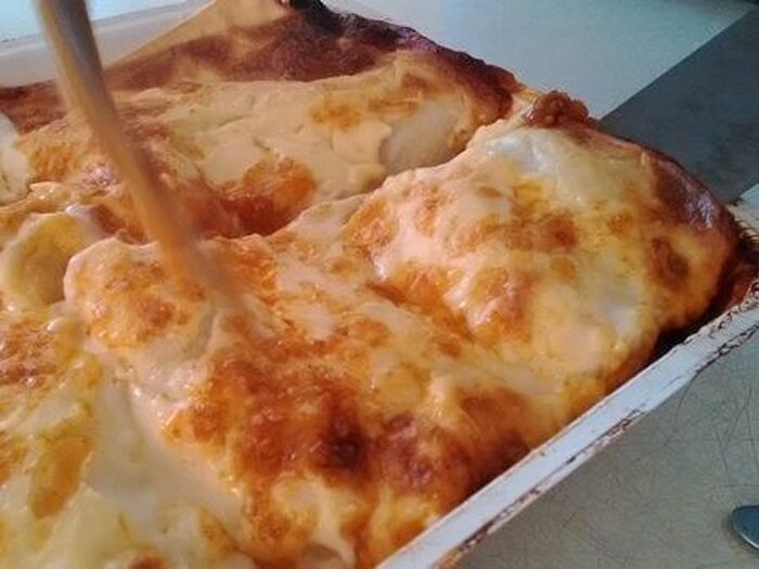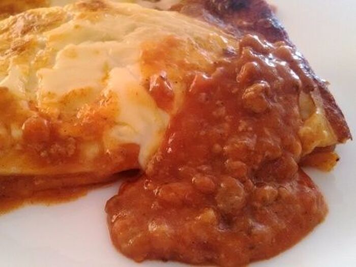 生地が3層くらいになっていて、その合間に玉ねぎや挽肉がたっぷりと入ったボロネーゼが入っていて、とても濃厚で美味しいです。