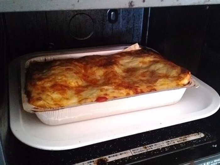 オーブンや電子レンジで調理する場合は、コストコでJarraballiのビーフラザニアを買ってきて、カチコチに凍っている状態で加熱しましょう!