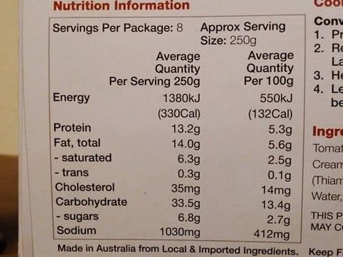このビーフラザニアのカロリーは250gあたり330kalです。