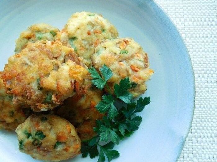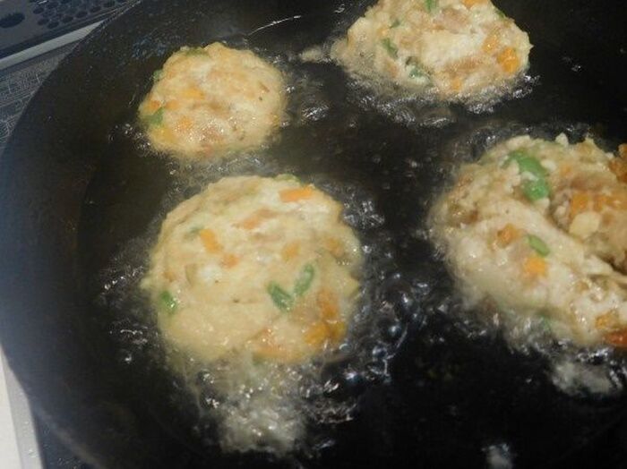 10等分し丸くまるめてオイルで全体をこんがりときつね色になるまで揚げる