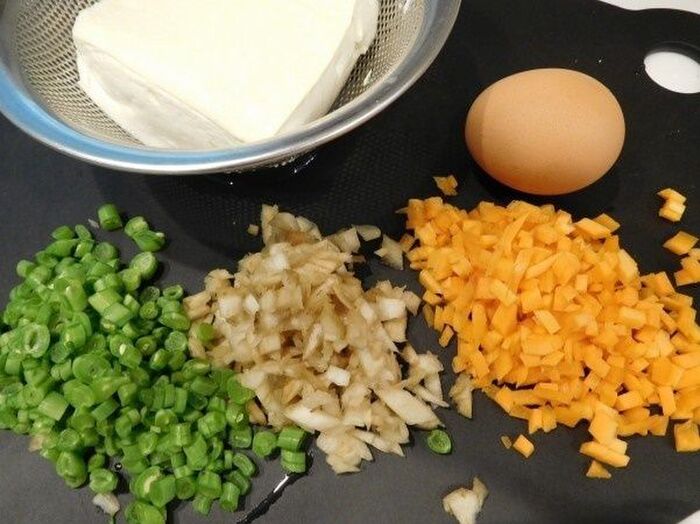 ボウルに豆腐 野菜 オイルをしっかりと切ったツナ缶 卵白 片栗粉を加え 塩・コショウで味を調えてよく混ぜ合わせる