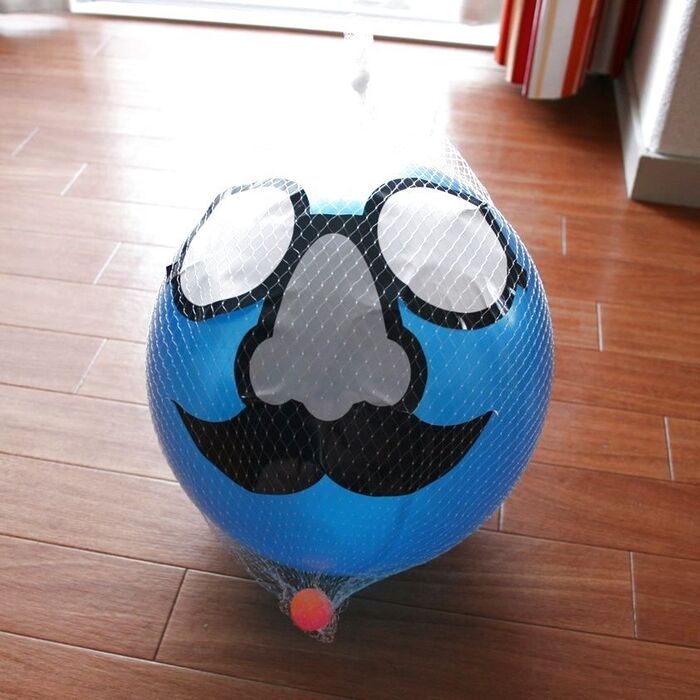 無地のままのボールだと面白くないので変な顔を見つけてシール用の紙にプリントしてボールに貼り付けてみました!