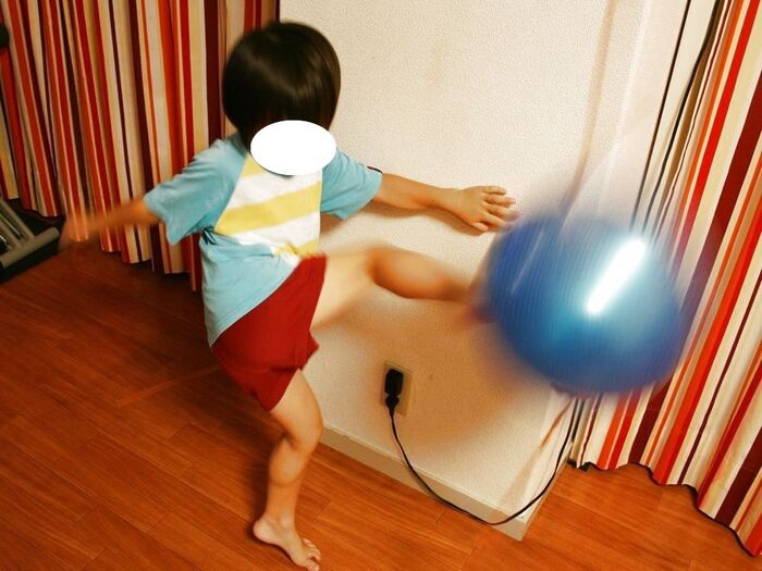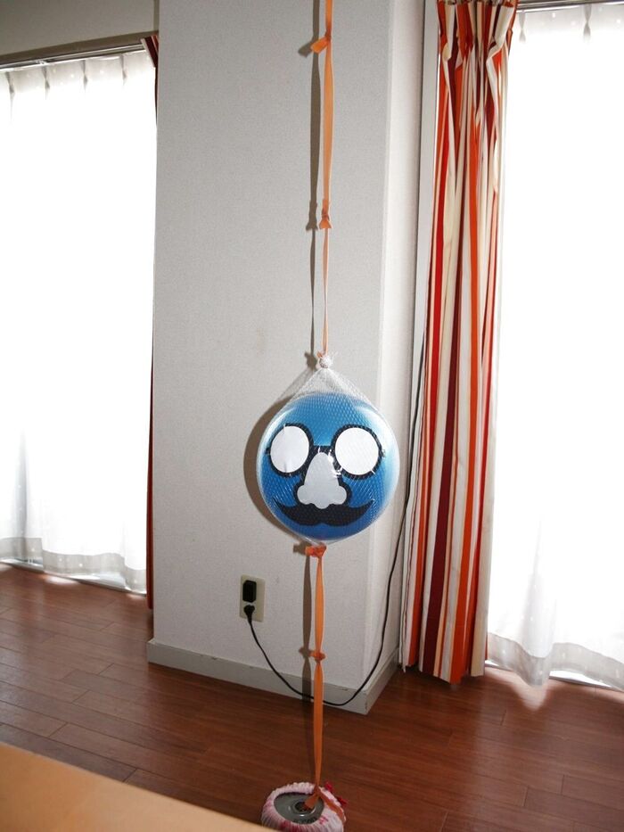 ボールの位置を子供のパンチがしやすい位置にゴムの長さを調整してあげました