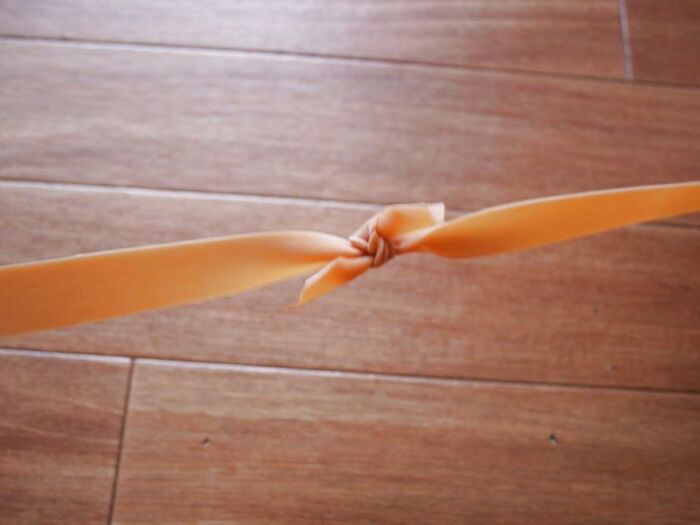 伸ばした輪ゴムを3本づつしっかり結び繋げていきます