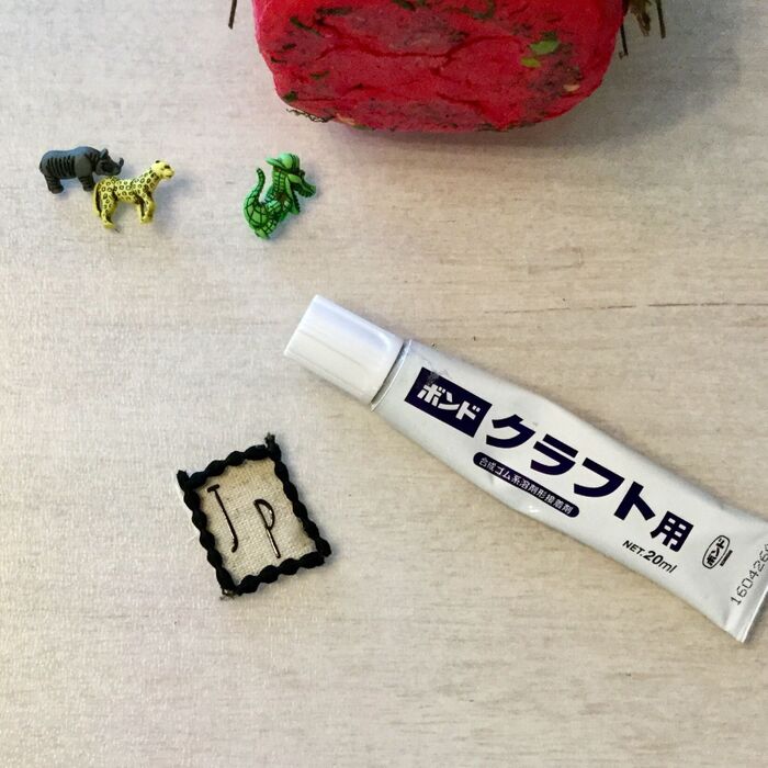 アニマルボタンも、お好きなところにボンドで貼ります。