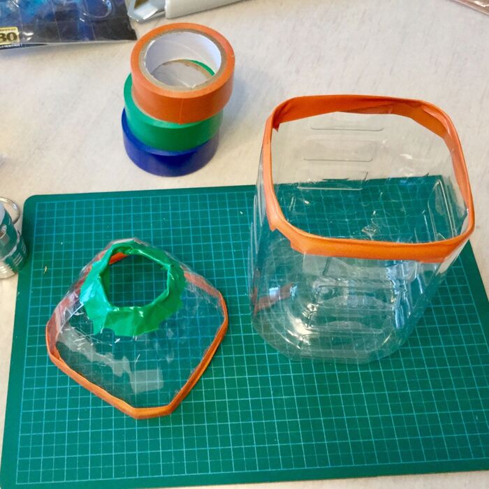 お好きな色の紙粘土で、ペットボトルの表面を包んでいきます。