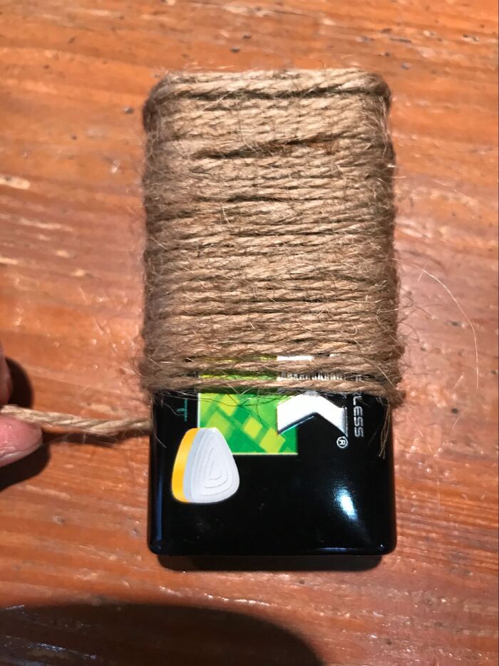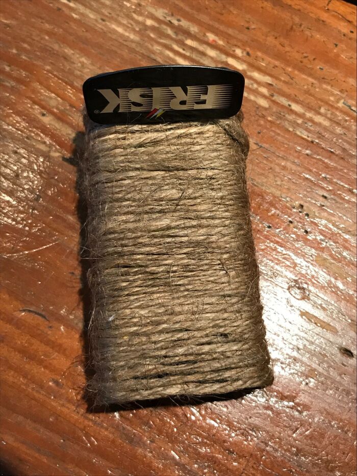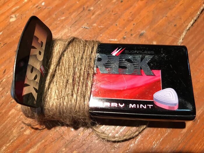 タブレット缶の蓋以外全て麻紐で巻きます。