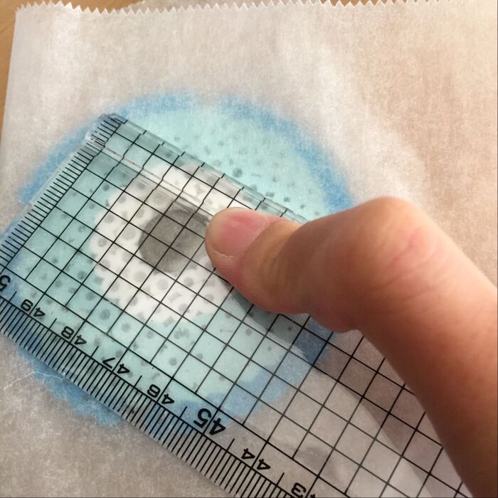 上からクッキングペーパーなどを当てがって、定規などの平べったいものを押し当てます。