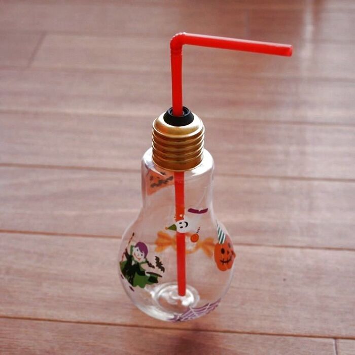 ストローの穴を作る時、ストローの太さと同じ大きさに穴を開けるとピッタリストローがおさまるのでジュースなどを入れて倒しても中身がこぼれないので安心!
