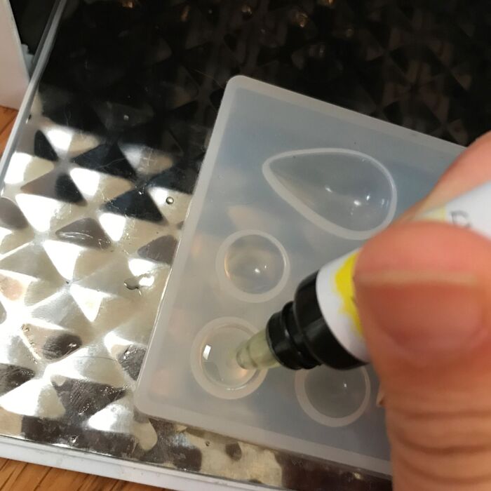 最初、透明なレジンに黄色のレジンを混ぜます。