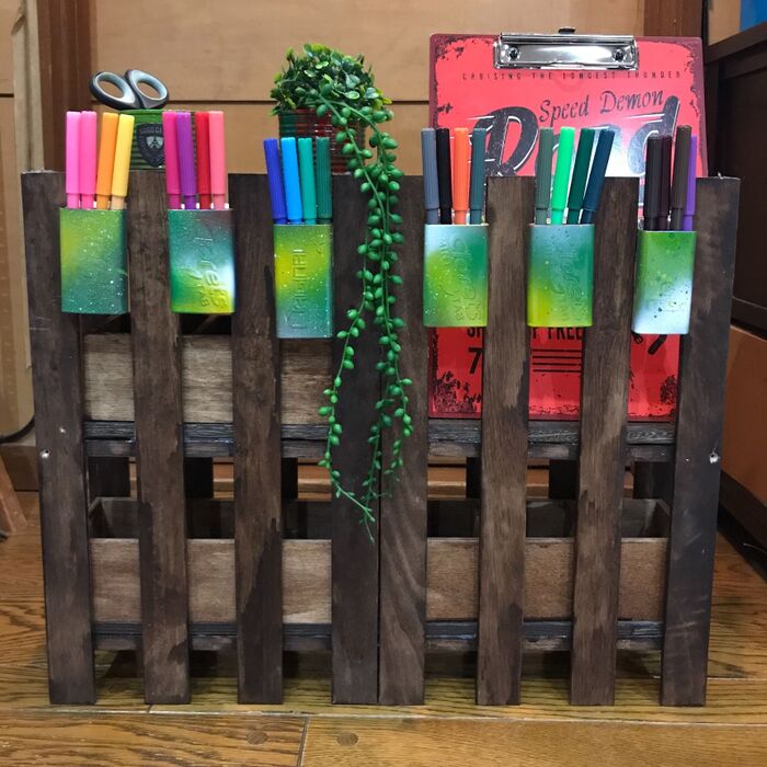 好みでペンや筆を立てたり、フェイクグリーンを飾ったり♪