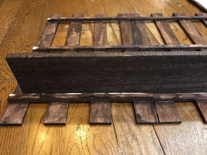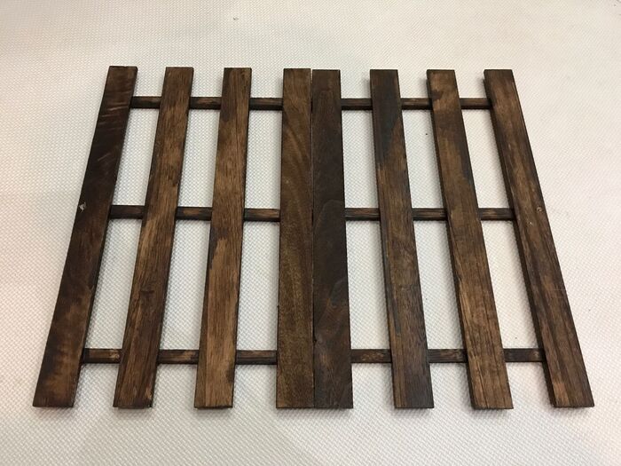 写真のようにすのこ(45×25cm)を2枚ずつ合わせ、45cmの辺にボンドを付け、45×50cmになるように接着します。