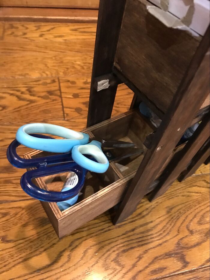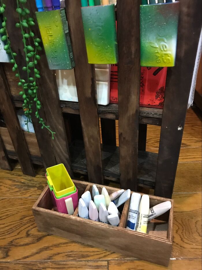パーテーションボックスにはのりやハサミ、絵の具を収納したり♪