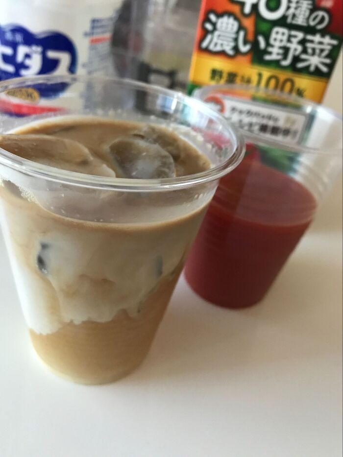 前日、インスタントコーヒーをお湯で溶かしておいたので、牛乳を注ぐだけ。