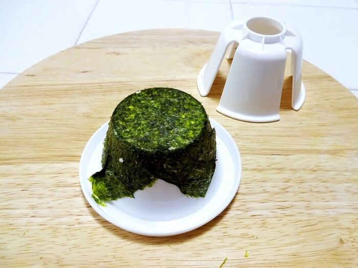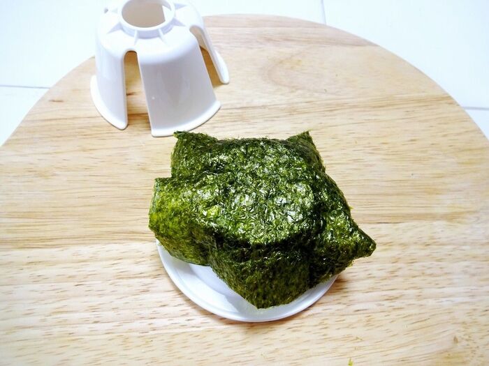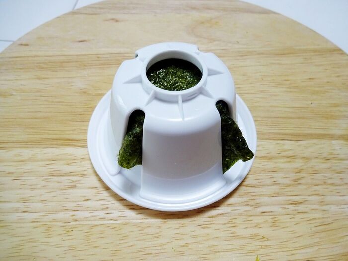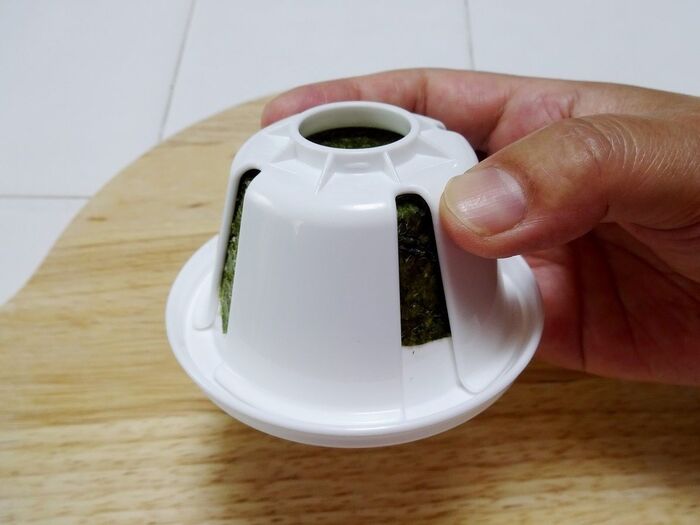 上カップをかぶせます。溝から海苔がはみ出ます。
