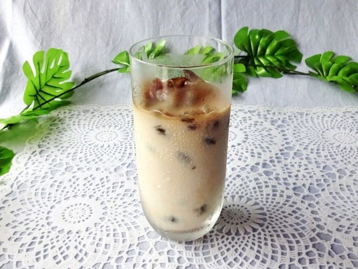 グラスに入れて牛乳を注ぐとアイスラテに。
