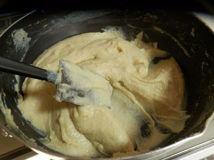 フライパンで水分を飛ばす際は、焦げやすいのでしっかり混ぜ続けるようにします。