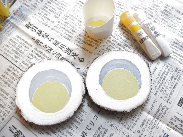 画像の水色はセリアの水性塗料(スモーキーブルー)に白を混ぜたものです。