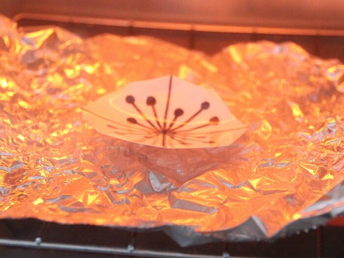 (→お皿や本などお家にある平らなものを2つ用意し、クッキングシートを貼ります)