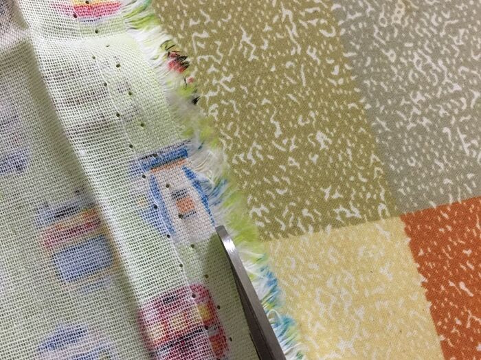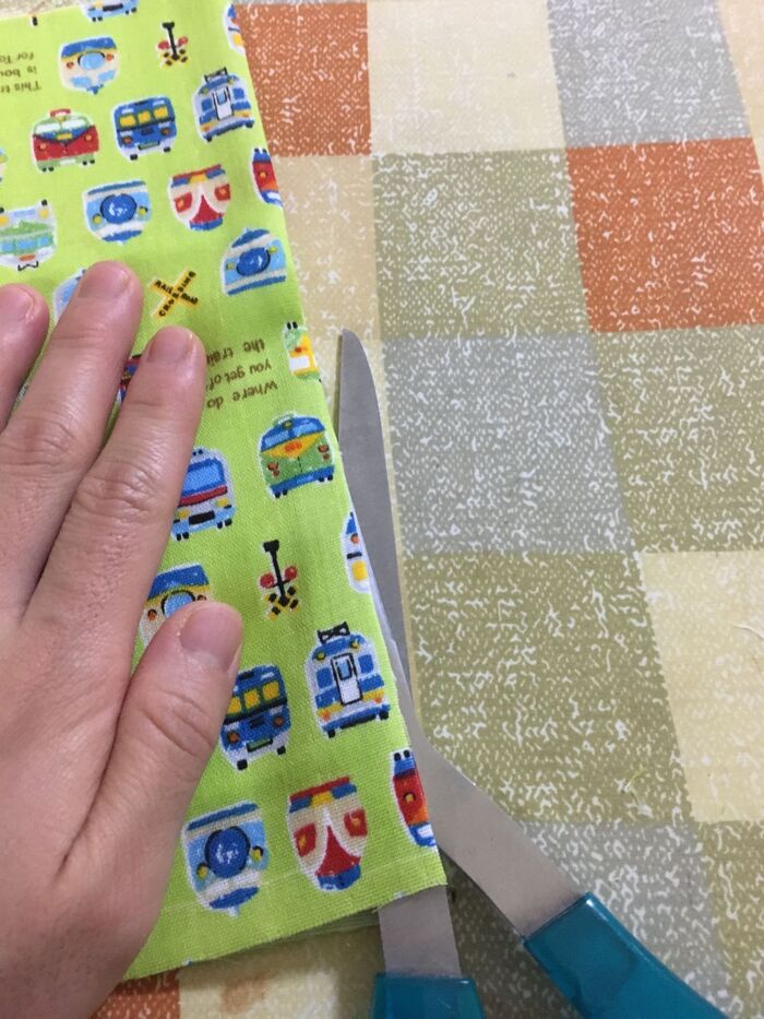 ①上下の生地などほつれやすいので、まず上下の余分な部分をはかる。