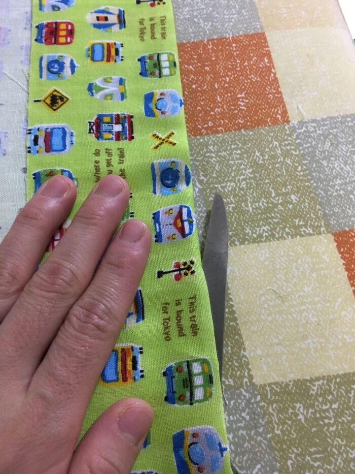 ②横もはかり、横は、2.5〜3cmぐらい多めにはかり、余分な生地を切り取る。