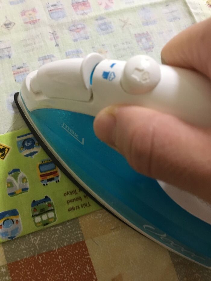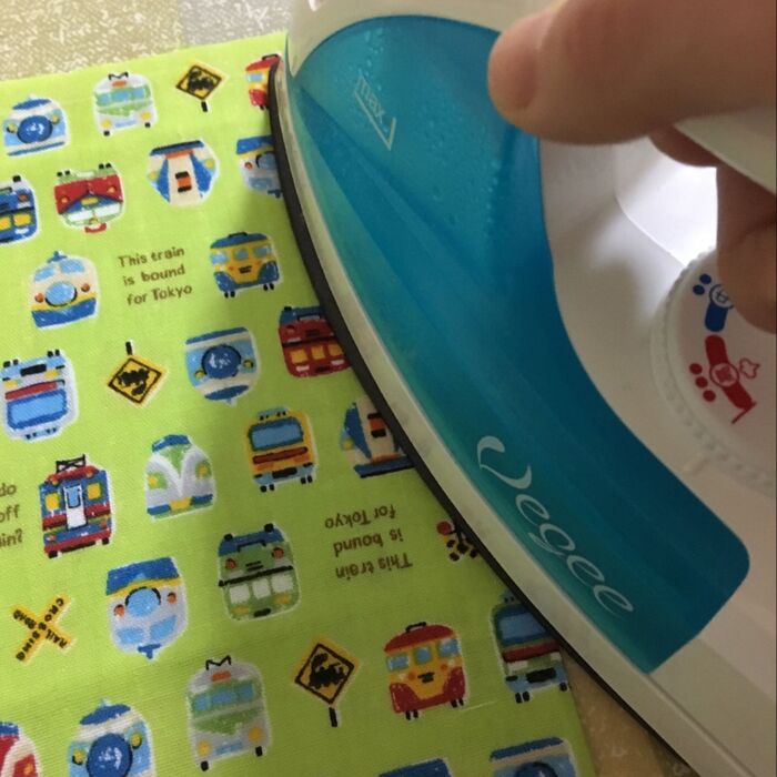 ⑦三つ折りにしたら、丁寧に、アイロンをかけていく。